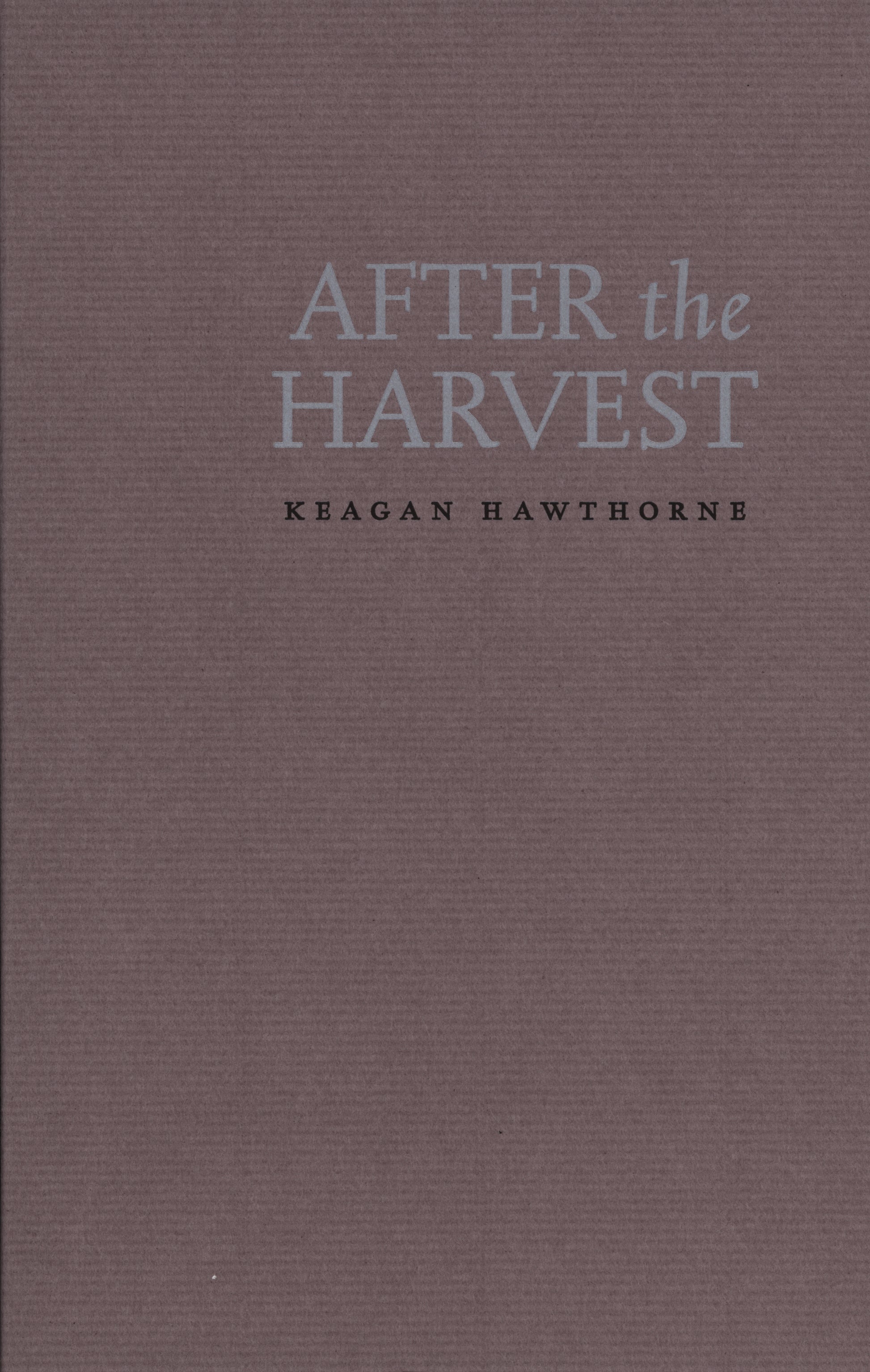 After the Harvest re-imagines a clutch of family stories that are the poet’s main connection to a disappeared ancestral farma complex bucolic world slipping farther into the realm of myth with every passing season. Soundful, ecclesiastical in cadence, Hawthorne’s poems form an elegy to a lost way of life and work while asserting the power that language holds to recreate.