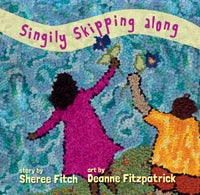 A “body movement multi-sensory inventive language poem” intended for children ages 2 to 5, Singily Skipping Along is playful and imaginative, asking the reader to pretend to be a tree, a whale, a spider, a cloud, and to find the many delightful ways they can move their bodies. The text uses some predictable and cumulative patterns but also includes joyful surprise patterns—and a healthy dose of nonsense—to stimulate children’s imaginations. Deanne Fitzpatrick’s hooked rug illustrations bring freedom and texture to the verse, and the result is a tactile and joyful classic Fitch book.