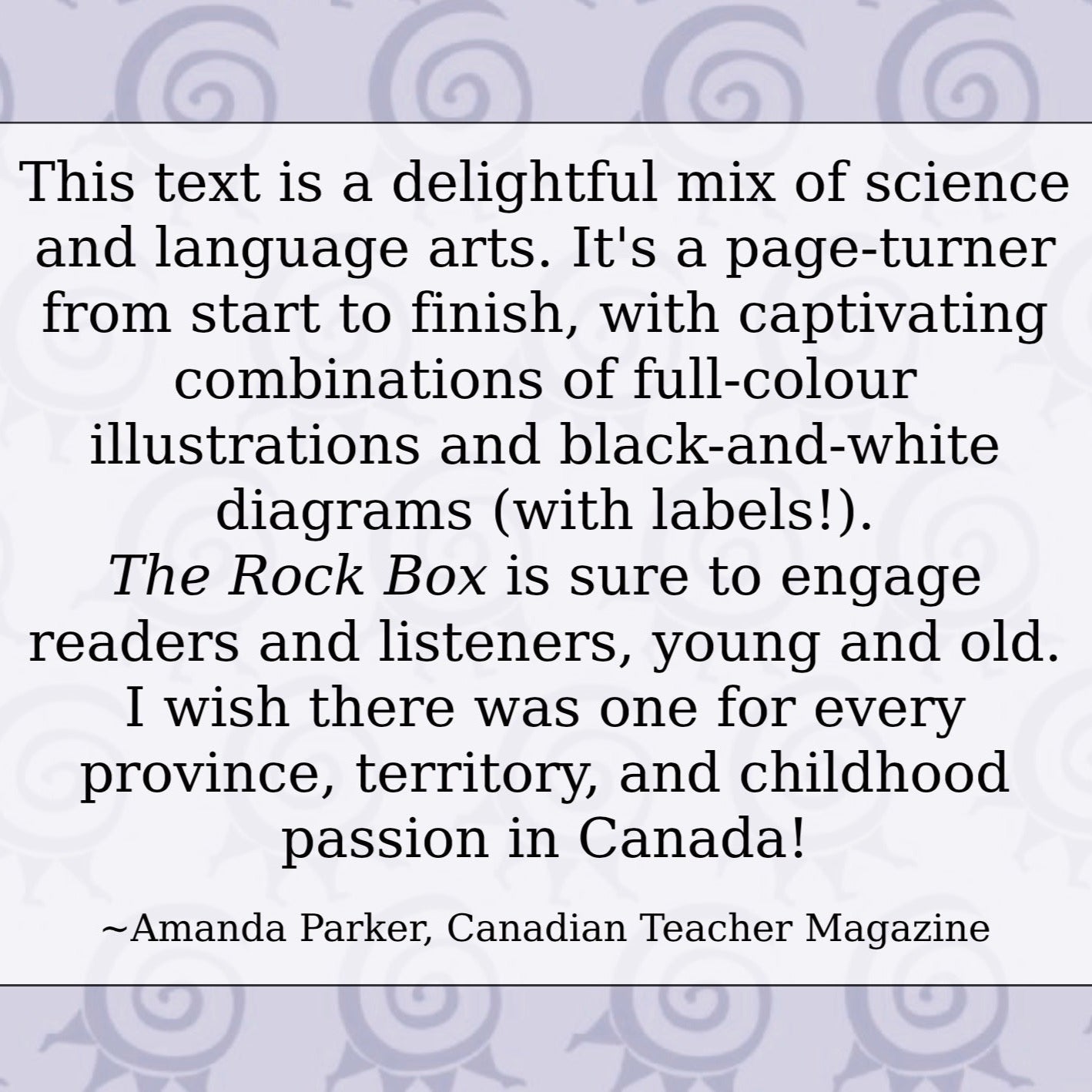 Petra loves rocks, and collects them with a passion. She keeps them in her bedroom, in the kitchen cupboards, between the cushions of the living-room sofa, even in the bathroom medicine cabinet. Petra’s parents do not love rocks. At least, not as much as Petra does. To convince her to winnow down her collection, her parents offer her a wonderful treasure—a rock box, with a selection of the rocks and minerals found in her home province of Newfoundland and Labrador. But, wait, is one of those rocks winking at her? Acclaimed Canadian poet Don McKay creates a charming tale of geology and deep time and connection in his first children’s book.