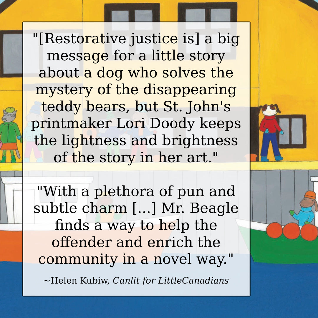 Teddy bears are going missing throughout Quidi Vidi village, and everyone is unhappy. Where could they be? Mr. Beagle has a nose for mystery, and once again he is on the case. Will he uncover the bears' whereabouts and get them back to their owners? Lori Doody's quirky canine detective is back in the fourth instalment of her charming picture-book mystery series that celebrates community and kindness, and solving puzzles.