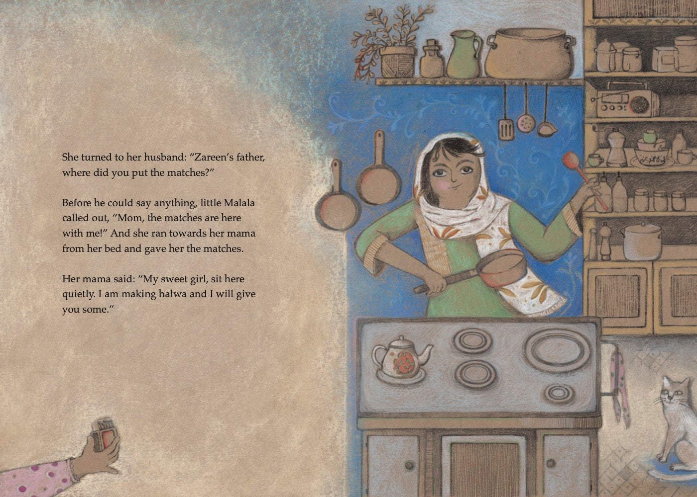 Papa wants a treat of halwa, but Mama doesn't have the ingredients to make enough for their whole big family. Little Malala overhears their secret plan for a late-night treat and tells her six brothers and sisters—then the fun begins. Where have Mama's matches for the stove gone? And where could the sugar be? Who's behind the mysterious disappearances from the kitchen?
