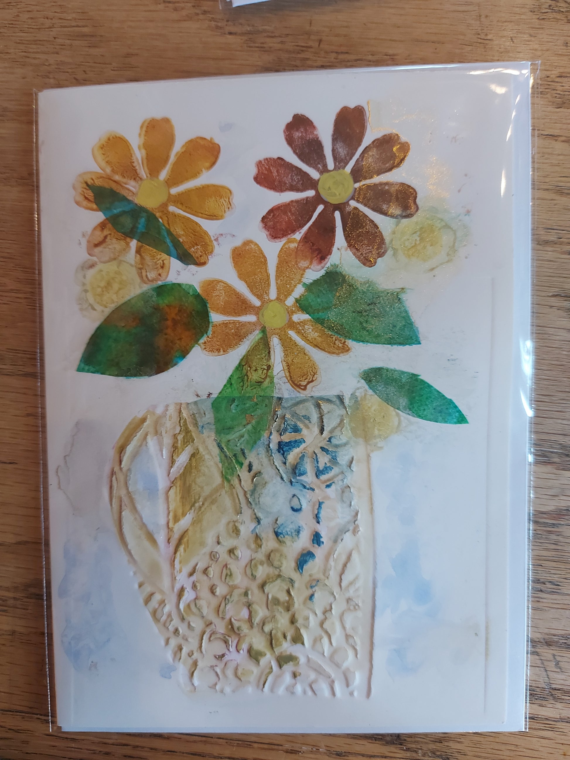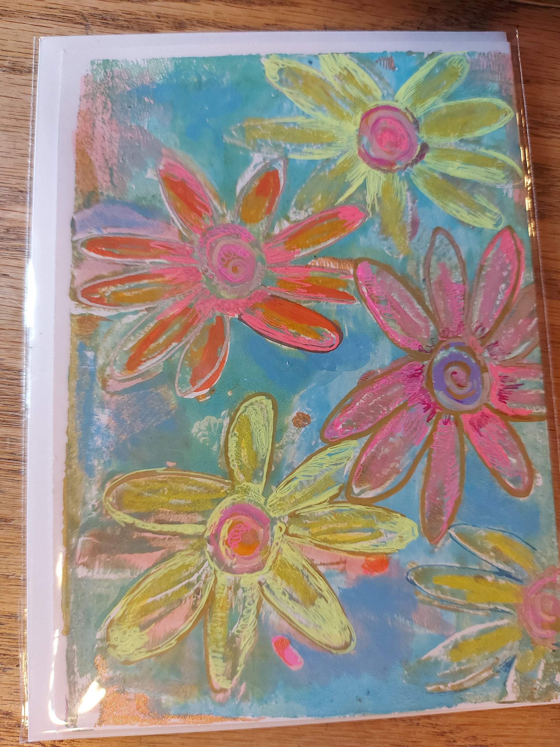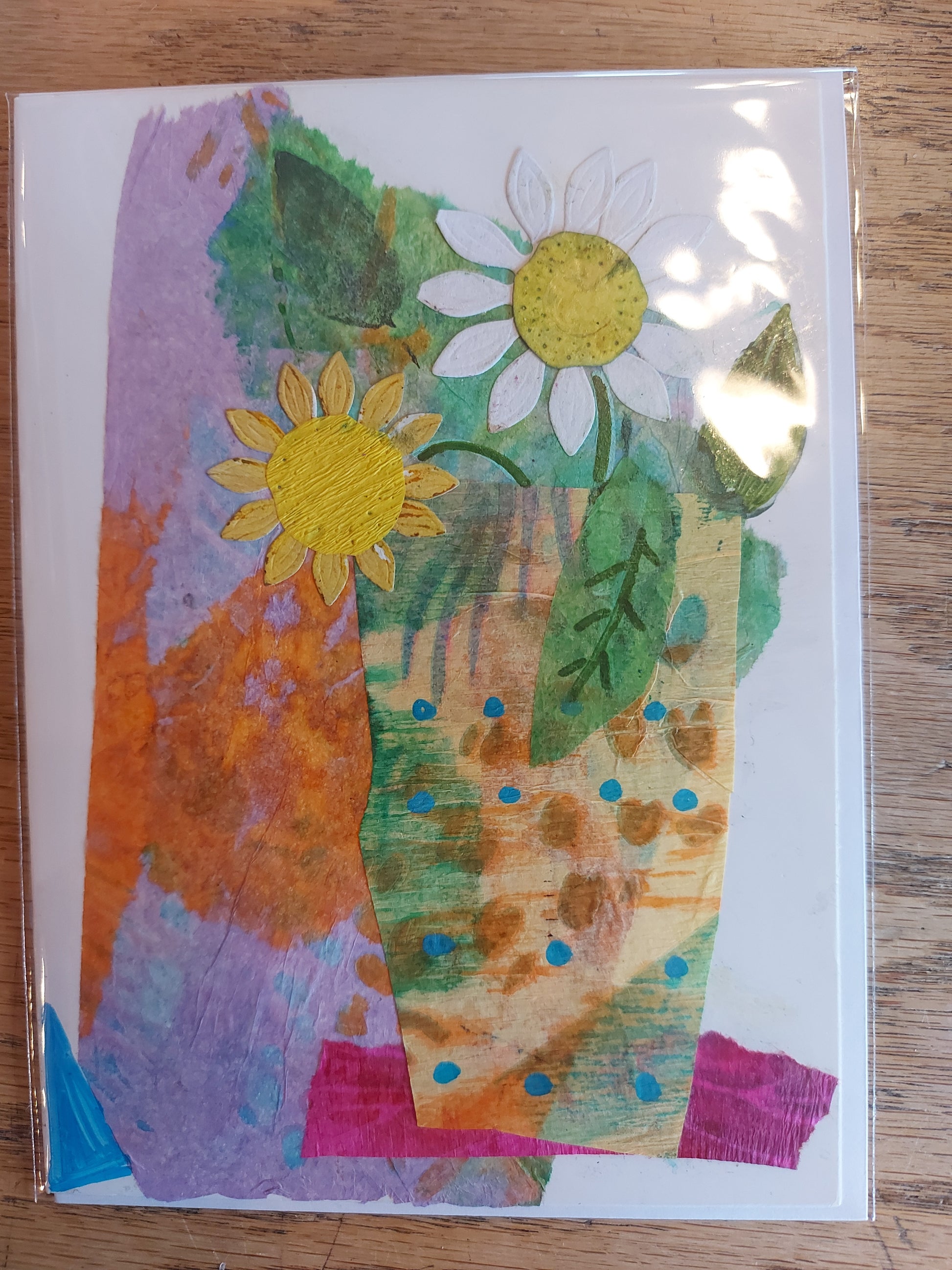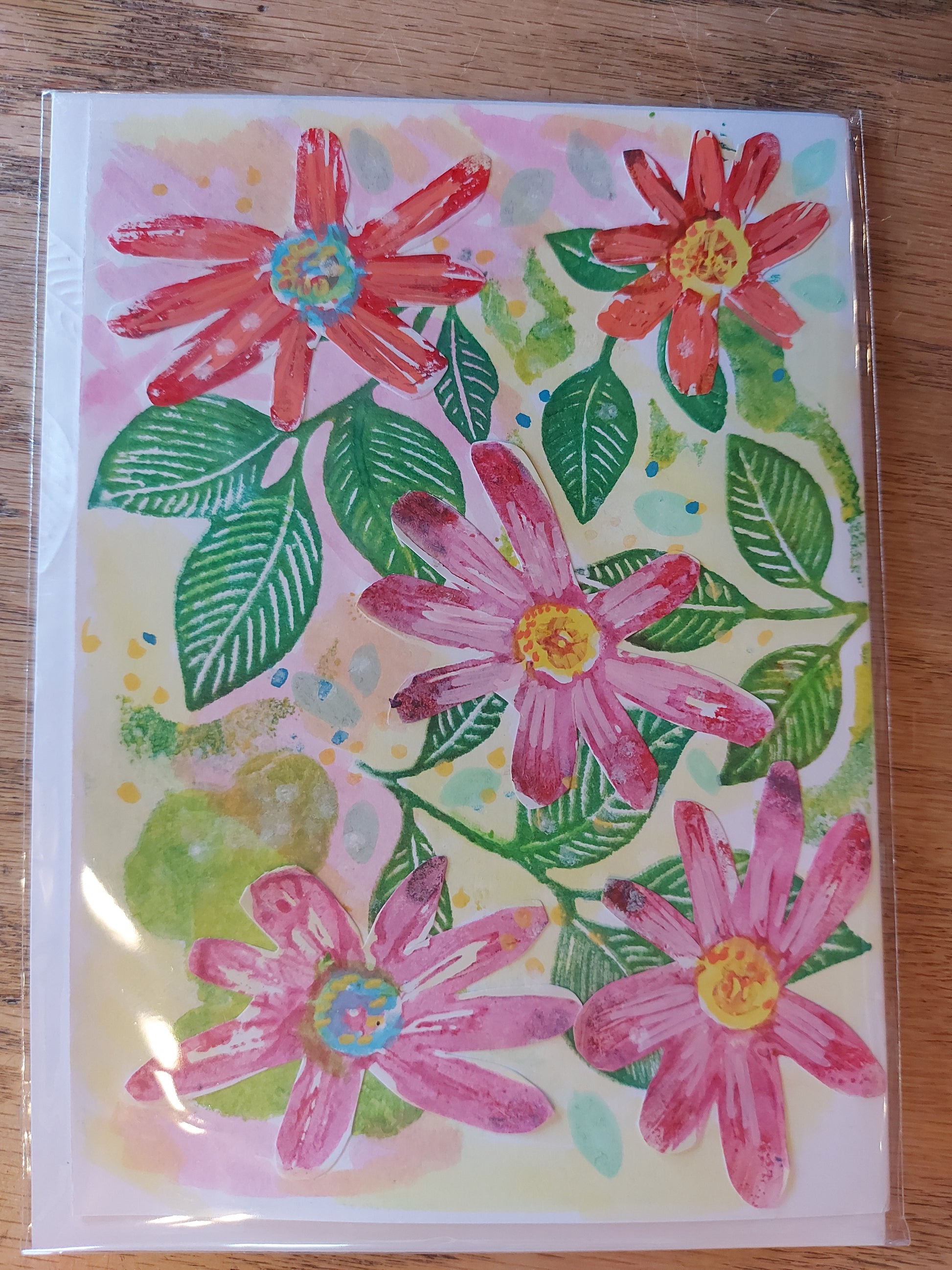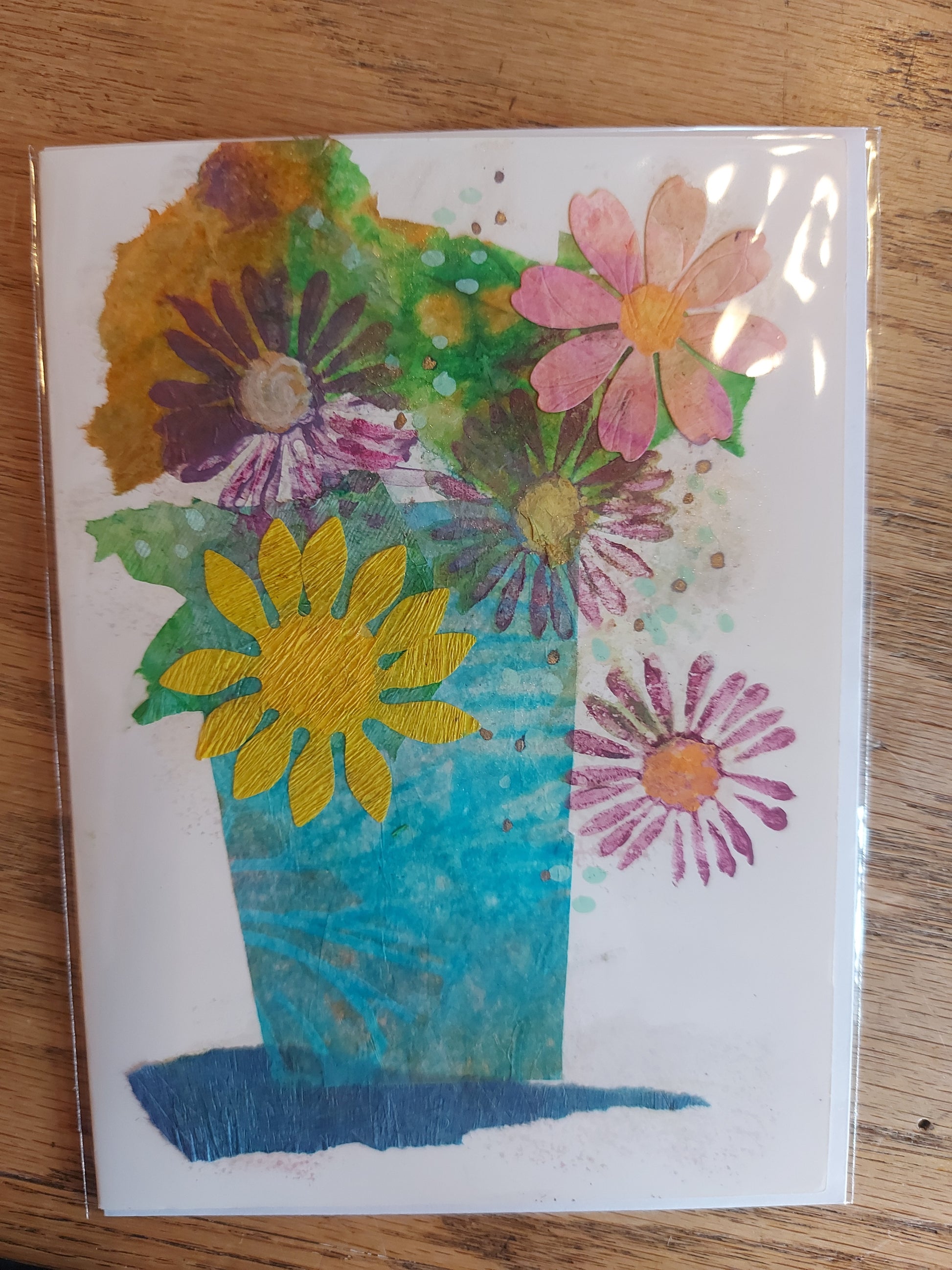 Each card by Janet Peter is a one-of-a-kind print collage with die cuts.