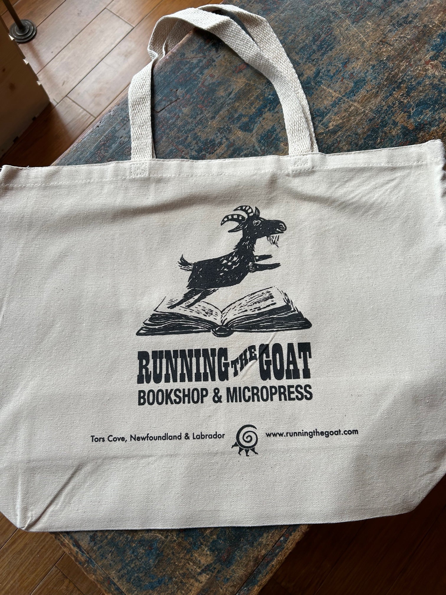 Perfect for a day of book buying or reading! These large, sturdy bags are made from heavy cotton canvas, and feature a delightful goat designed by Veselina Tomova printed in black on the natural-coloured material.