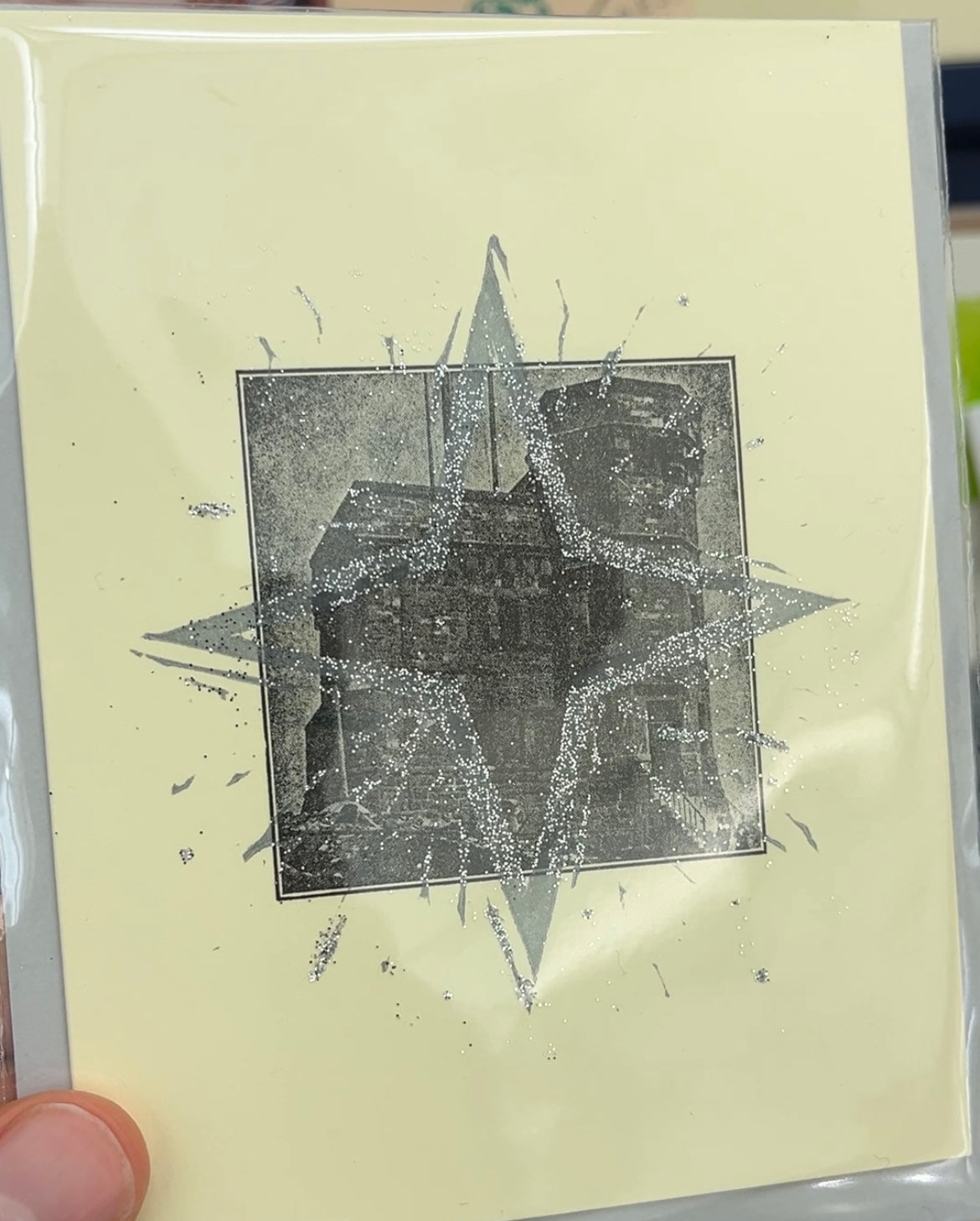 Every card is an original print printed using lino cut and metal type. Where you see lutiple colours, the card has been run through the printing press multiples times, or hand-tinted. The inside is blank.