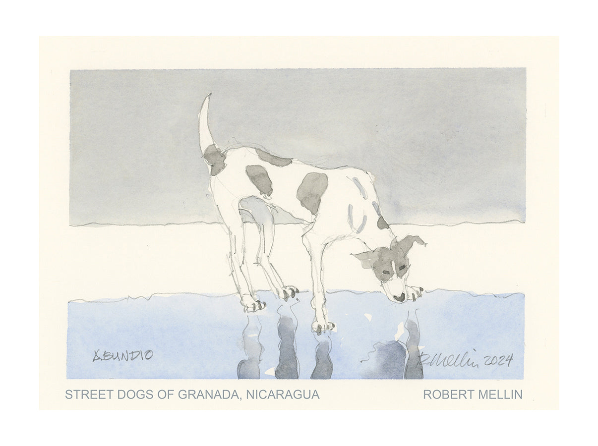 A gorgeous gathering of watercolours by Robert Mellin, celebrating the street dogs of Granada. Based on his show at the Emma Butler Gallery. Proceeds donated to the SPCA in Granada.