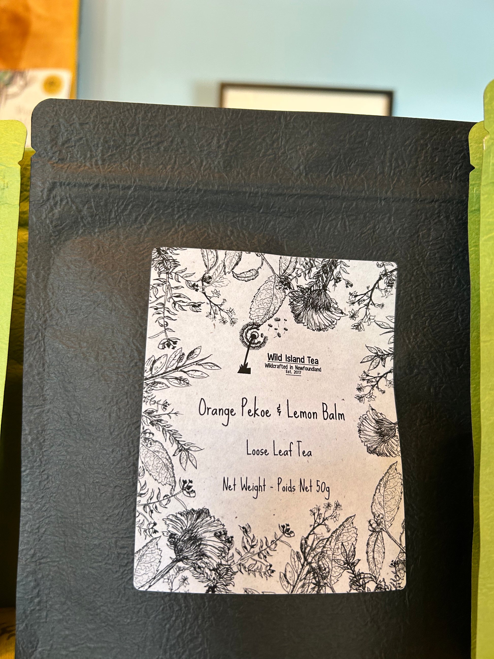Black tea blend, including sustainably foraged ingredients from the fields and forests of Newfoundland and Labrador.